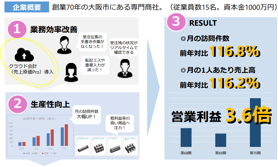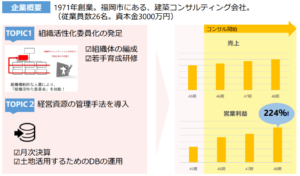 利益貢献事例を一部紹介いたします製造業新規顧客の獲得による利益貢献看板・標識機製造業 売上のトップラインを上げる施策を順序よく実施営業利益マイナスからの脱却を実現製版・印刷業 取引量の多い1社依存体質だった老舗企業を立直し目標設定・稼働管理習慣化で売上拡大工具製造業 フォーバルが実践してきた営業の極意を実践型コンサルティング建設業3カ月で大幅な経営改善に成功建築設計業 余命6カ月…聖域なきコストカット施策に取り組む社員への幸せの還元を実現電気設備工事業 経営者の想いをカタチに。「人」を大切にする会社の実現を目指す見える化→業務管理導入で売上拡大防水工事 あらゆる管理ができていない状況に徹底的に見える化卸売業確実に事業を進める事で営業利益4倍建築グラフィックデザイン業 債務超過で会社を引き継いだ2代目社⾧の決意に応える月次で店舗別の経営状況を見える化飲食業 従業員の働きやすい環境を整えるために、確実に売上を伸ばす施策を実施既存の組織体に変革をもたらし利益向上建築コンサルタント モチベーションを失っていた有能な若手社員、セクショナリズムの蔓延にフォーカスサービス業業務効率で時間を生み出し利益向上へ制御機器部品卸売業 クラウド会計導入により、1人当たり22.6時間/の業務効率改善財務体質改善、次期経営者育成に集中自動車整備業、自動車販売業 ホールディングス化を目指し土台作りを実施大手一社依存体質を改善内装業・家具卸売業 創業30年超、一代で築いたオフィス移転事業。息子へ託す前に安定した収益性を実現